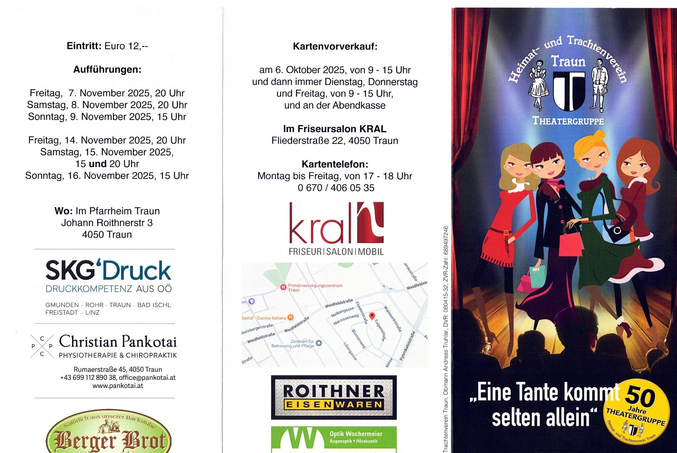 Kartenvorbestellung online unter: www.ticketlotse.co oder theater_rottenegg_2025 oder 0677/990 33 658 (täglich von 18 - 19 Uhr)